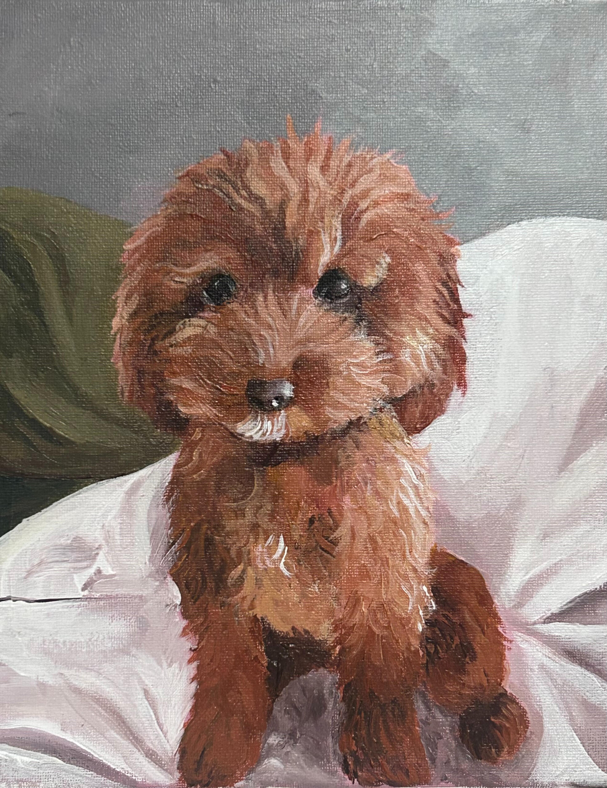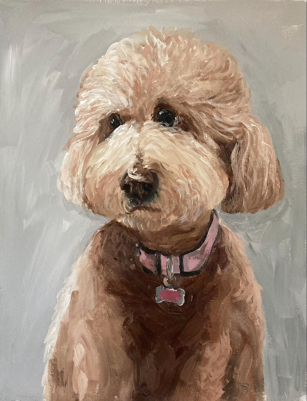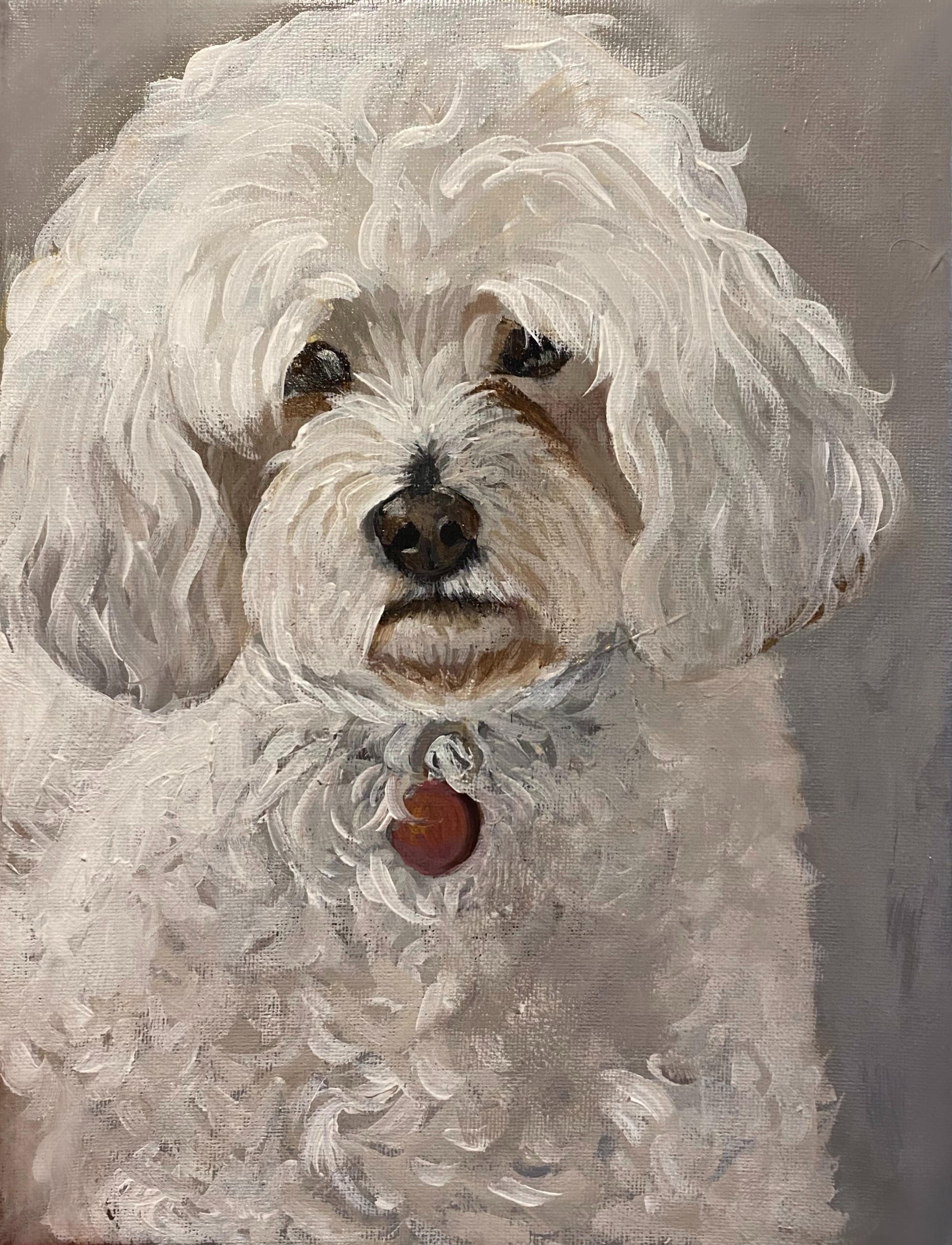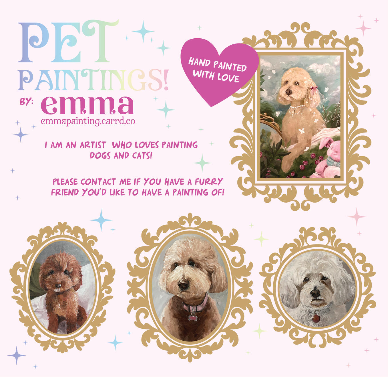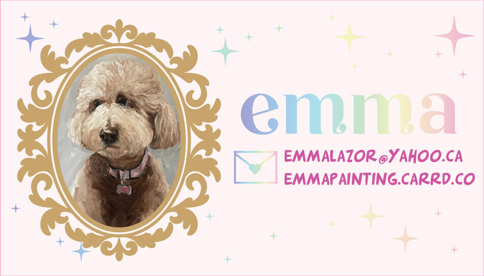 Hello, I am Emma. I am a dog-lover who loves painting dogs and using the colour pink. I work with acrylic, watercolour and oil paints.Please contact me for any inquiries.